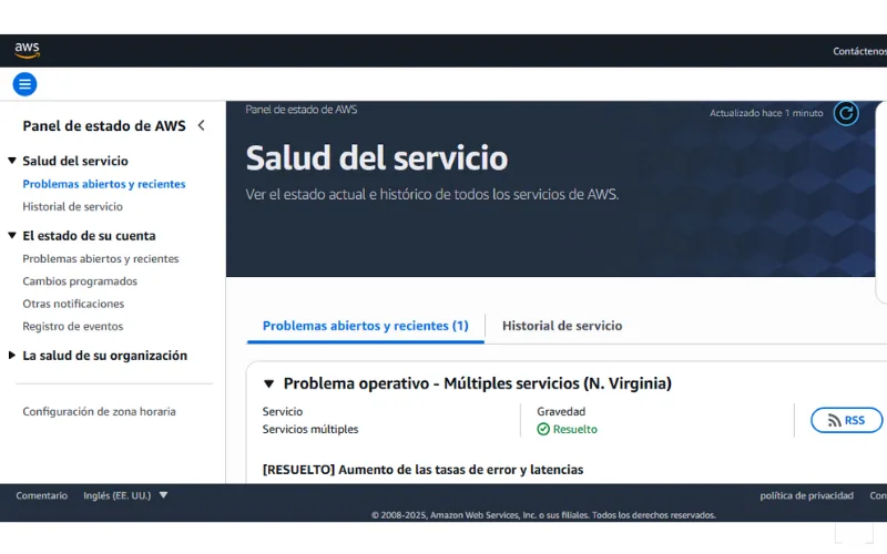AWS mantuvo actualizaciones constantes en su página de estado (Health Dashboard), indicando progresos, servicios que iban recuperando y alertas de posibles latencias residuales.