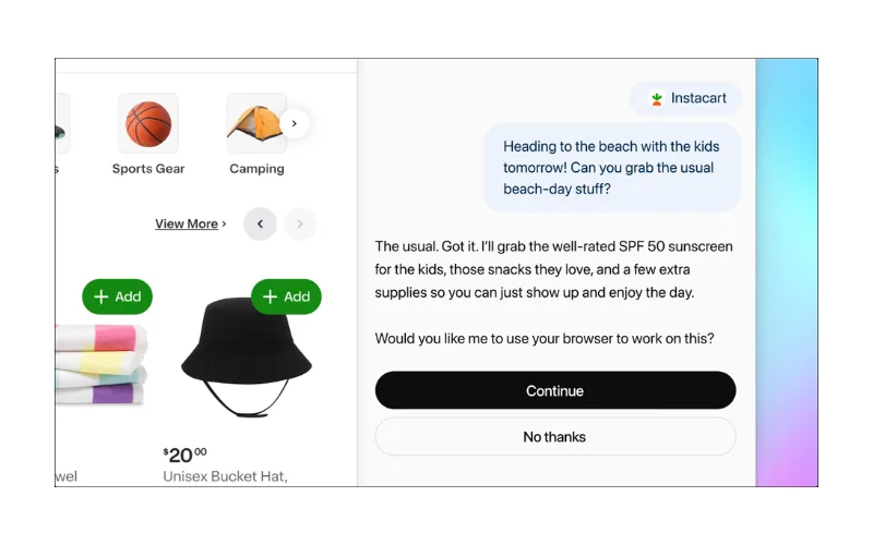 Uno de los escenarios donde ChatGPT Atlas puede marcar diferencia es cuando necesitas realizar tareas complejas online: comparar productos, planificar un viaje, reservar alojamiento, gestionar listas de compras. Con el modo agente (Agent Mode) puedes pedir: “Busca vuelos para Madrid la próxima semana, compara precios y resérvalos” (suponiendo que habilites el modo y supervises).
