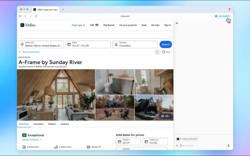 Una de las funciones que más define a ChatGPT Atlas es su barra lateral integrada (sidebar) con ChatGPT contextual. Esta barra permanece accesible mientras navegas, lo que te permite hacer preguntas sobre la página actual: pedir resúmenes, pedir que te explique tablas, pedir comparaciones de productos, o interpretar datos sin tener que salir de la página.