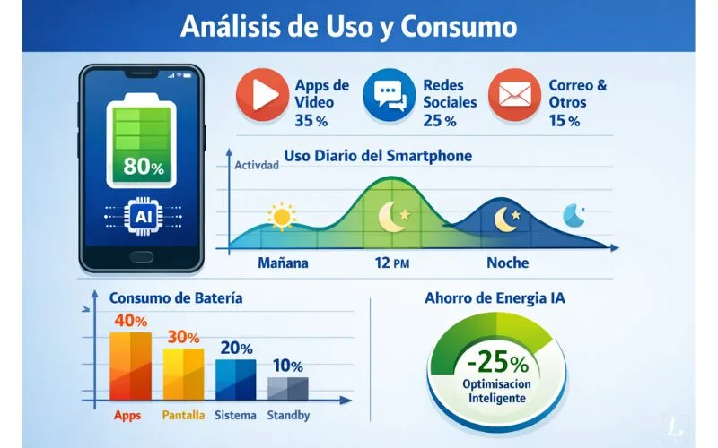 La IA observa cómo usas tu móvil: qué apps abres, qué funciones empleas más, incluso cuándo cargas tu dispositivo. Con esos datos crea un “perfil de uso personalizado” que permite anticipar qué recursos serán necesarios y cuáles no, para ahorrar energía cuando se prevea inactividad.