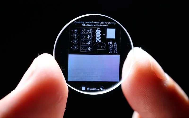 • El almacenamiento 5D desarrollado en la Universidad de Southampton: han mostrado prototipos que almacenan el genoma humano completo en un cristal de memoria “eterno”.