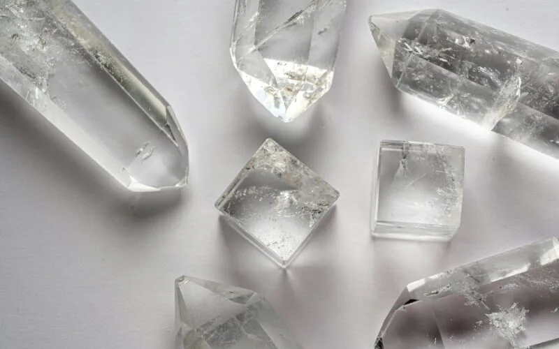 • El cristal usado suele ser vidrio de cuarzo fundido (fused quartz o silica glass) debido a su estabilidad química, resistencia al calor y a la degradación con el tiempo.
