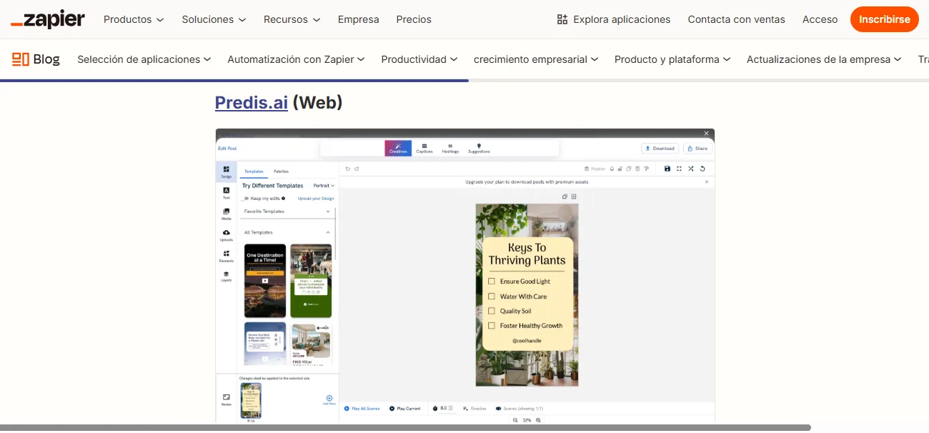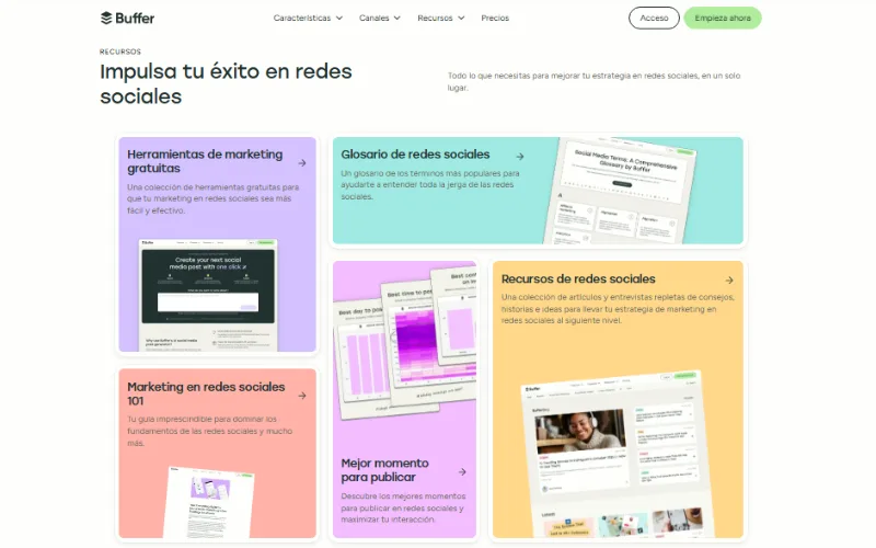 - Usa plantillas de publicación predefinidas para agilizar la creación de contenido antes de subirlo a la herramienta.