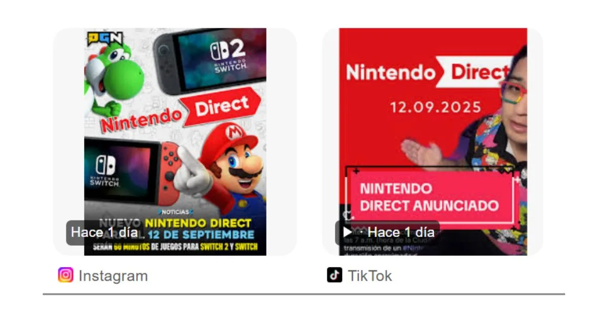 - También sus cuentas de redes sociales (por ejemplo Nintendo de tu país, Nintendo América, Nintendo Latam, etc.), pues suelen compartir avisos previos al Direct, recordatorios, preview de lo que se anunciará.