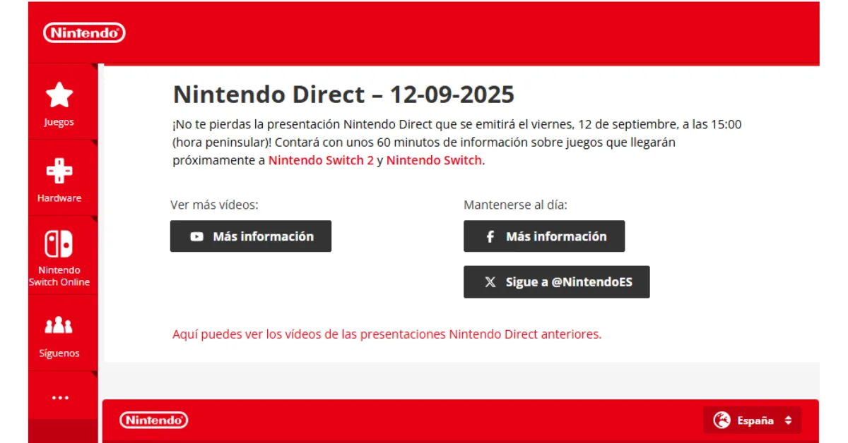 Anunciado un nuevo Nintendo Direct tendrá lugar el viernes 12 de septiembre de 2025.
