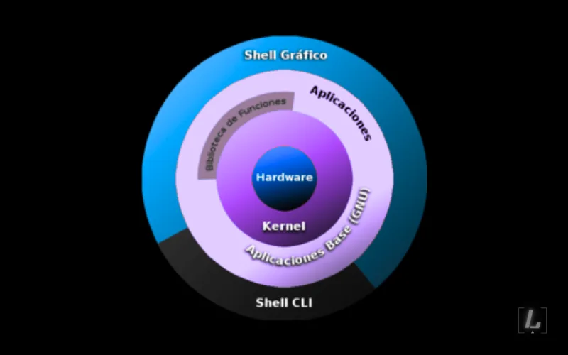 - Linux hace el trabajo del núcleo: gestionar hardware, seguridad básica, drivers, comunicación con dispositivos y coordinación de procesos. Sin el kernel, los componentes GNU no podrían operar directamente sobre el hardware.
