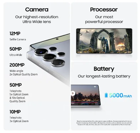 | Cámaras traseras | 200 MP + otras (telefoto, gran angular). | 200 MP principal + 12 MP ultra + 10 MP teleobjetivo. | 50 MP + 12 MP ultra gran angular. |