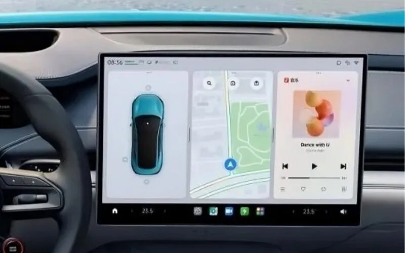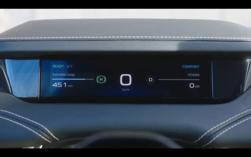 El interior destaca por su estilo moderno, con elementos de diseño tipo “automóvil-smartphone”: pantalla grande, controles digitales, ambiente interior minimalista, que busca dar la sensación de innovación tecnológica por encima de un auto convencional.