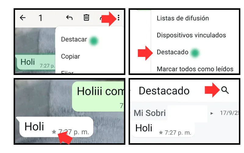 - Mensajes destacados (o “starred messages” / “mensajes con estrella”) es una función que ya existía: permite marcar mensajes que consideras importantes para encontrarlos rápido después. No genera una alerta futura ni notificación automática para recordarte algo, simplemente los guarda en una sección específica.