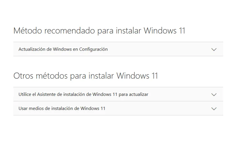Opciones para actualizar de Windows 10 a Windows 11