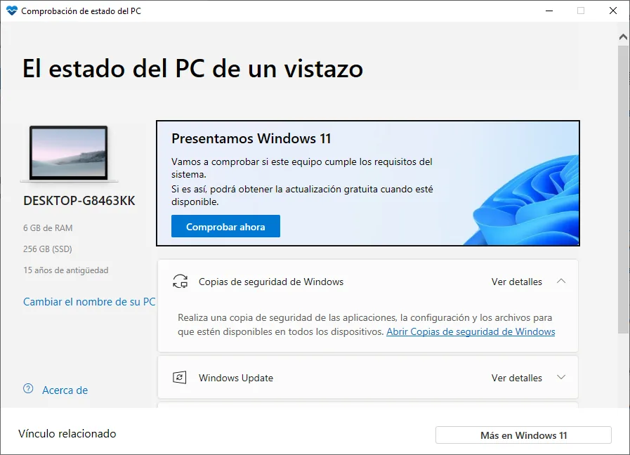 Microsoft ofrece la aplicación PC Health Check, diseñada para evaluar si tu equipo es compatible con Windows 11.