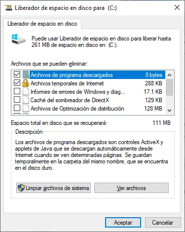 • Elimina archivos temporales, descargas innecesarias o versiones anteriores de Windows.